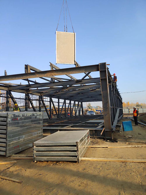 鋼骨架輕型板適用于輸煤棧橋、公共民用等建筑圍護(hù)屋面、樓面、墻面.鋼骨架輕型板由輕型鋼骨架、冷拔鋼絲網(wǎng)、改性水泥珍珠巖復(fù)合芯材(專有技術(shù))、復(fù)合抗?jié)B耐磨涂層(專有技術(shù))組成.鋼骨架輕型板集輕質(zhì)、承重、節(jié)能、防火、隔聲、泄爆、抗震等功能于一體,既保持了傳統(tǒng)鋼筋混凝土構(gòu)件安全度高、使用壽命長的優(yōu)點(diǎn),又滿足了現(xiàn)代建筑對(duì)輕質(zhì)、節(jié)能、環(huán)保的要求。